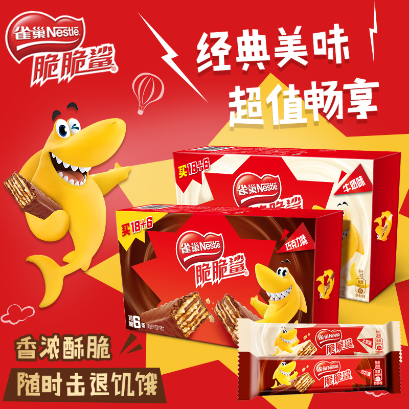 雀巢脆脆鲨巧克力牛奶威化饼干10条24条新品零食雀巢官方授权店网红零食80后零食热门设计联盟服务商