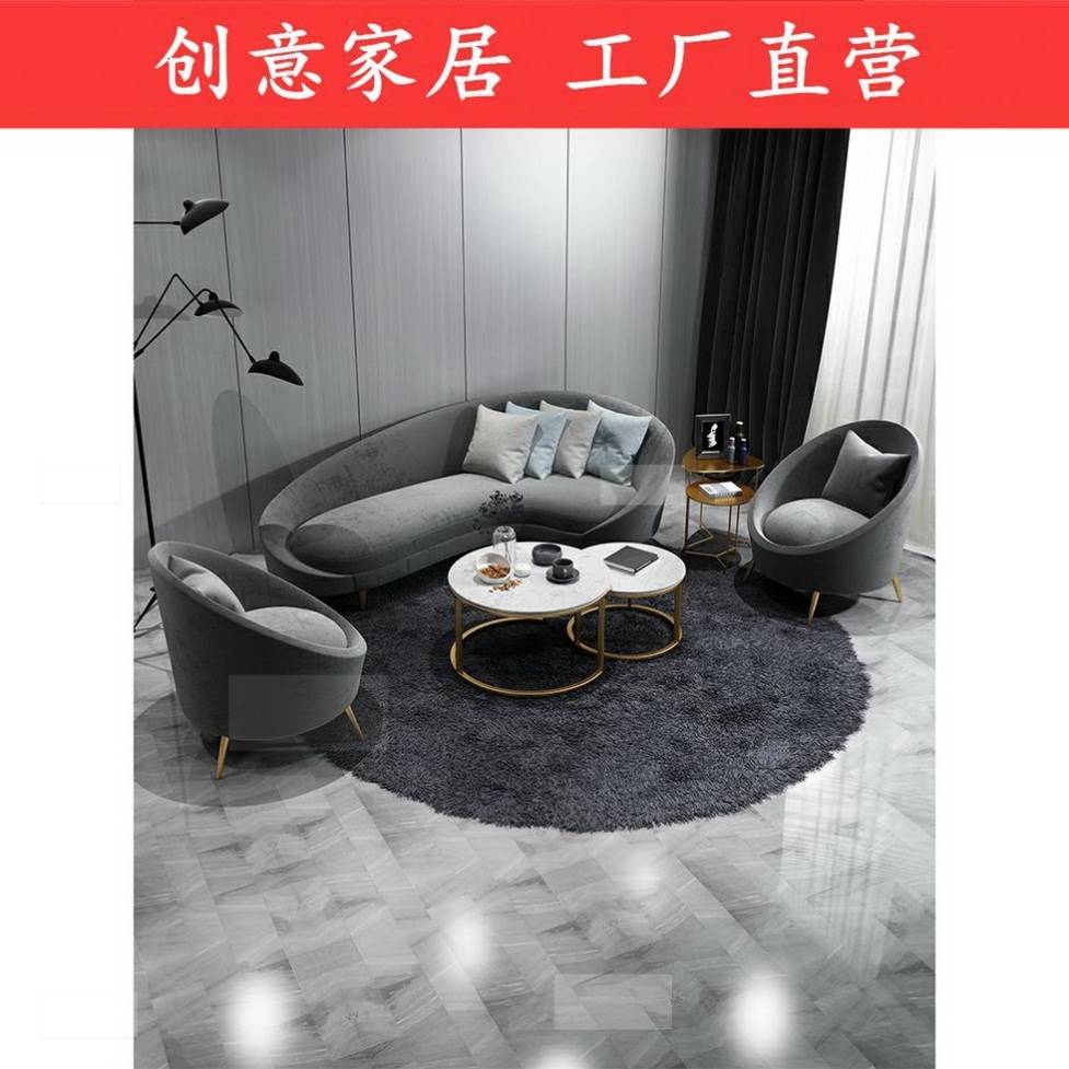 热卖北欧绒布办公沙发椅弧形会所轻奢接待会客异型轻奢休闲沙发椅热门设计联盟服务商