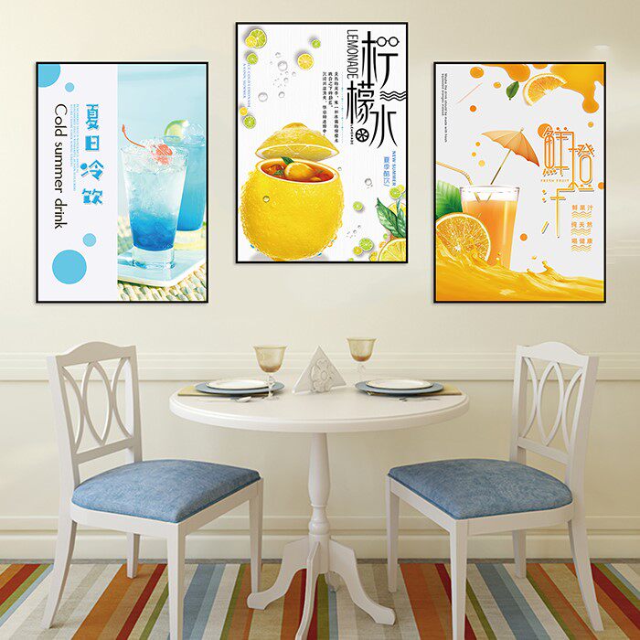 饮料墙面装饰店果汁店冷饮宣传画奶茶创意背景墙海报贴纸装饰店。热门设计联盟服务商