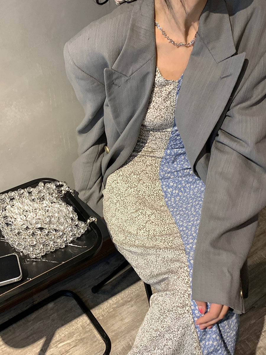 外卖到了穿上秒变纸片人小众设计感拼接碎花显瘦V领吊带连衣裙女热门设计联盟服务商