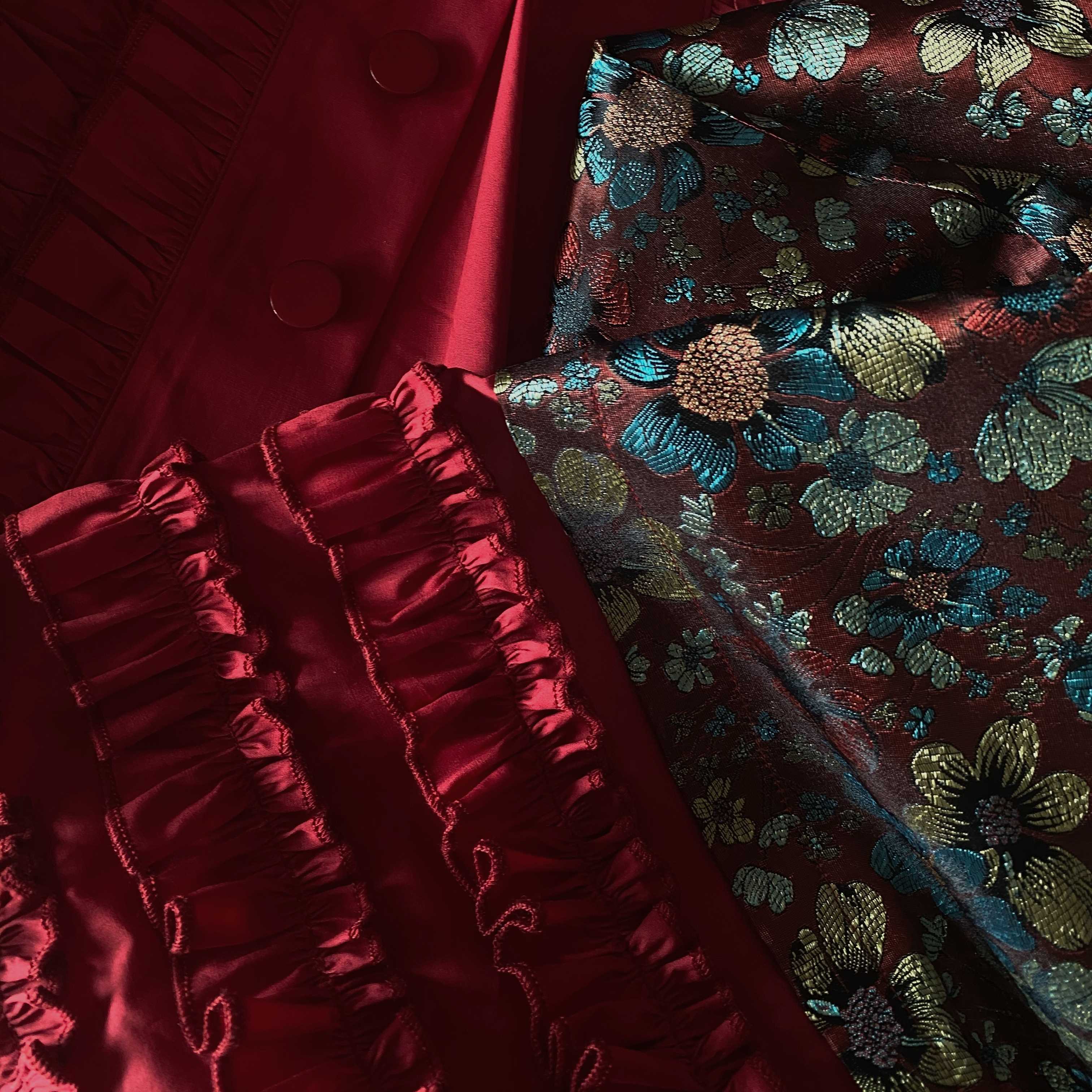 莫宁 红色提子花半身裙女长裙女夏款长复古高腰设计感小众蛋糕裙热门设计联盟服务商