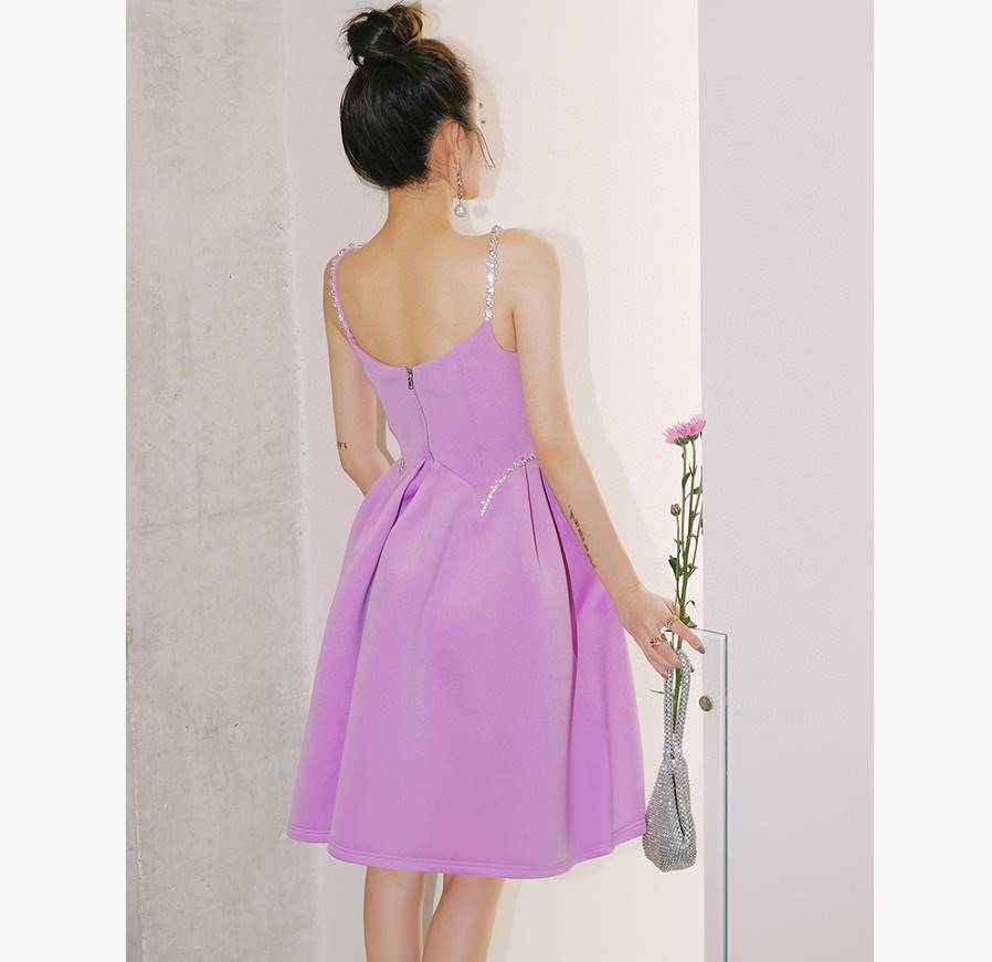 层紫色空气吊带褶皱连衣名裙女夏设计感媛轻奢小众镂空水钻礼服裙热门设计联盟服务商