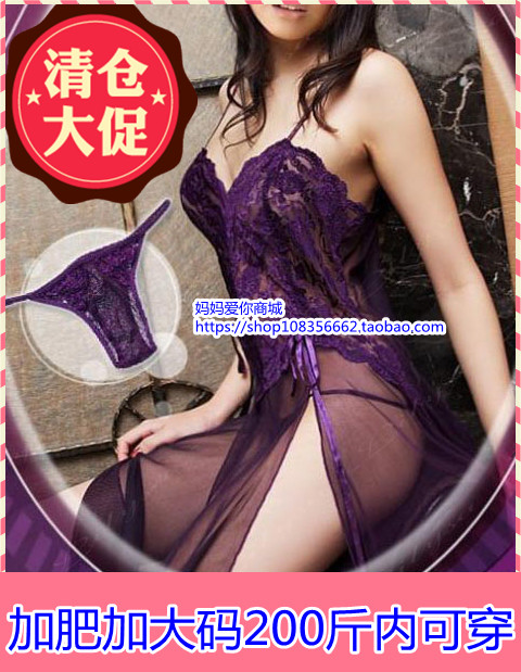 夏季新款加大码吊带睡裙蕾丝深V领长裙开叉透视网纱睡衣女士热门设计联盟服务商