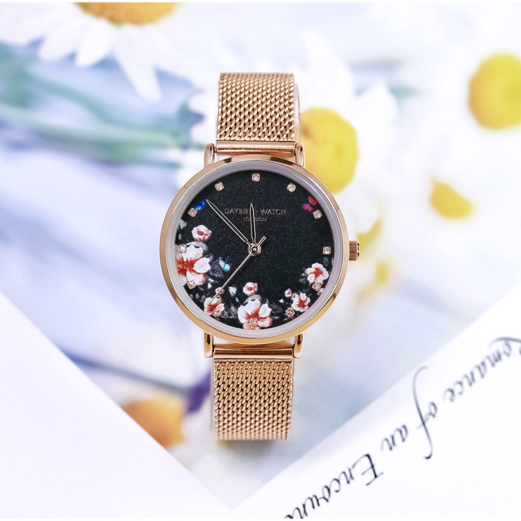网红抖音同款法国小众手链女表花朵小蜜蜂米兰网带钢带手表金热门设计联盟服务商